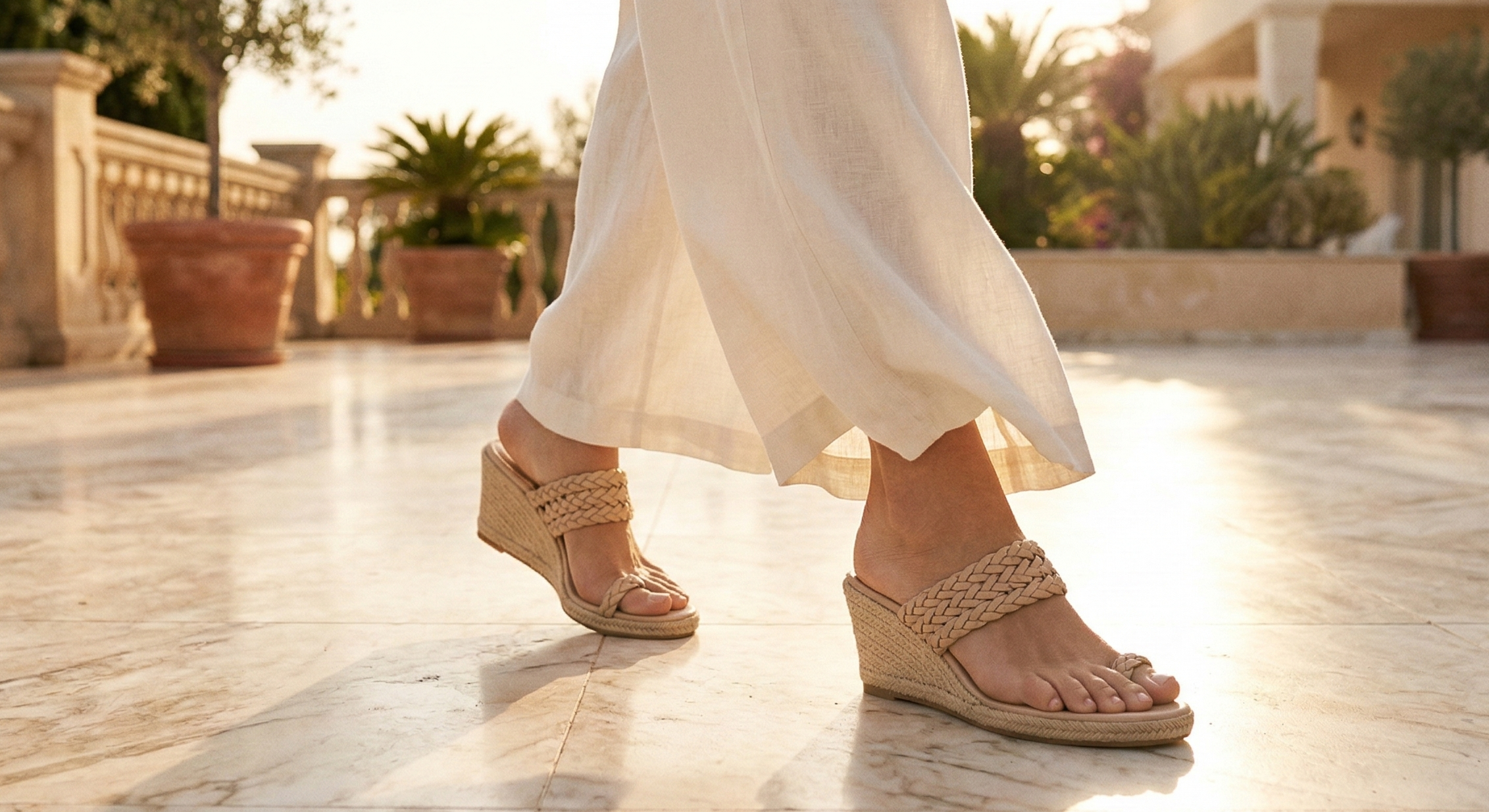 Beige Braided Toe Ring Wedge Sandal