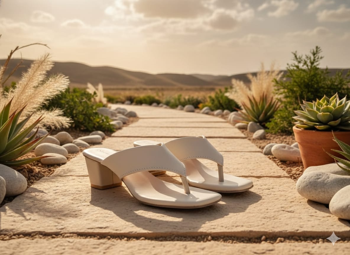 Beige Counter Back Block Heel Sandal